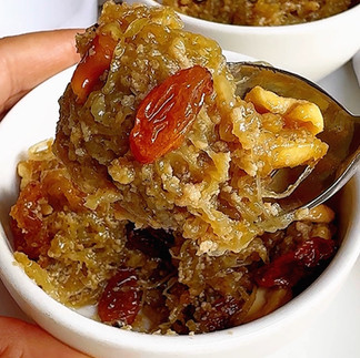 2.Add jaggery powder and masa and continue stirring it. Add milk followed by the dried fruits and milk it well. Cook it for a few more minutes until it's all well combined. Once done, transfer it in small dessert bowls ,garnish it more nuts and serve hot.